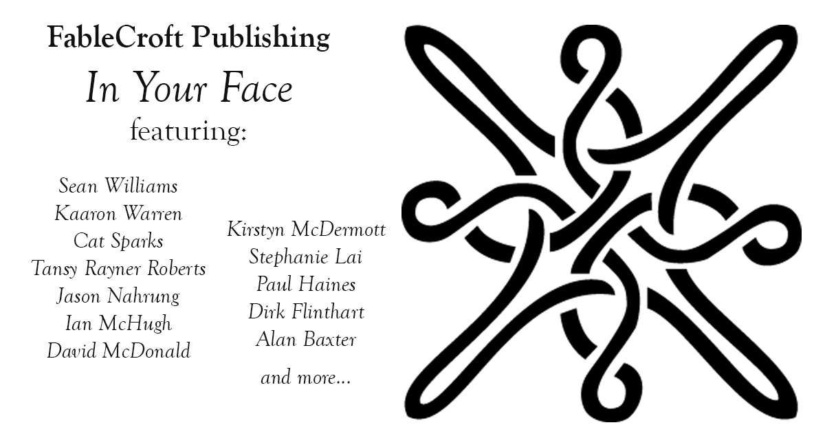 FableCroft Publishing is putting out the book, entitled In Your Face. The stories, publisher Tehani Wessely says, “will be provocative and/or confronting but with a firm purpose – they are pieces that will perhaps make readers uncomfortable because they are a bit too hard-hitting or close to the bone, but which interrogate these themes and ideas, and make a point about the world we live in”.