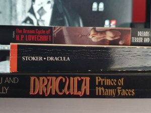 You’ll notice some of the hard-copy research material pictured, the exquisite coincidence of a certain Cthulhu castle in Transylvania, the challenge of layering Tepes over Stoker over Lovecraft et al.